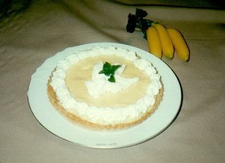 - (13)バナナを2〜3mmの輪切りにする。空焼きしたパイの上に並べるので、厚さをそろえます。バナナの色が変色するので、レモン汁をかけておく。