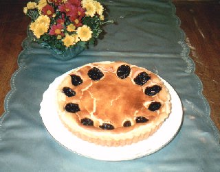(6)(5)の中にクリームを入れ(ゴムベラが便利)プラムを等間隔に並べ、予熱したオーブン中段に入れ、きれいな焼き色がつくまで、約40分焼く。