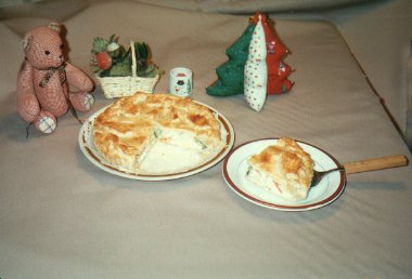 - (11)残った生地は、クッキー型で抜いたりして飾って下さい。飾ったものの上にも塗り黄味を塗り、表面に包丁で切り込みを必ずいれる。