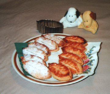 - (21)包丁で葉脈をつけ、温めておいたオーブンの中段で約15分、きれいなきつね色になるまで焼く。粉糖をかける時は、冷めないうちに茶こしきを通して振る。