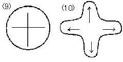 - (10)(9)の切り込みを目印に、それぞれ四方向に、めん棒で外側に開くように伸ばす。