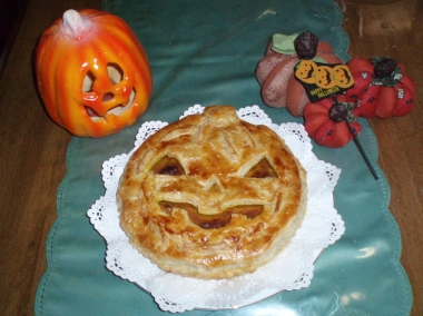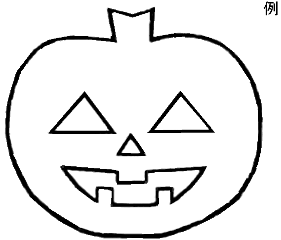 この型紙は、右の例を参考にタルト型(またはパイ皿)の大きさに合わせて描き、眼や口などを開けてください。