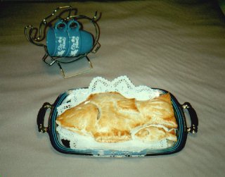 (5)残りの生地をかぶせ、切り込みや飾りをつけ、塗り黄味を塗る。
