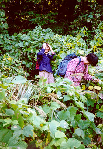 おいしい話にはやっぱり裏がありました。途中で道はなくなってやぶをかきわけ進むはめになってしまいました。おかしいな、今日はハイキングで沢登じゃなかったはずなのに。