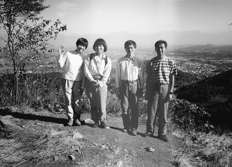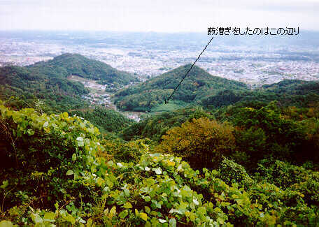それでも、なんとか鐘撞堂山のてっぺんに着きました。低いけれど結構眺めのいいやまです。さっき苦労したやぶもきれいに見えています。