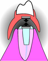 保険で使用されているクラスプの替わりに支える歯を磁石にくっつくように加工します。さらに義歯側に小型の磁石を埋め込み義歯を支えます。金属のクラスプを使用しないので金属部分が外から見えません。また支台となる歯に対して横の力を逃がすので支台歯のストレスを軽減します。結果として残っている歯が長持ちします。 |
