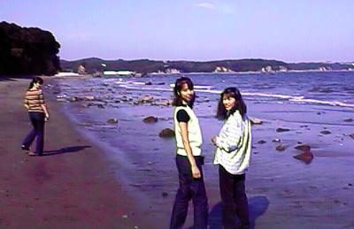 1998年10月4日(日) 大神ファーム 昼食後 お昼寝海岸を散策する美女3人 |