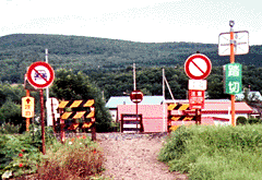 北海道の踏切。車両通行止めとか自動車進入禁止とかあれこれ標識が立っているが、この踏切を見る限り車で通り抜けるのはおよそ不可能だと思う。しかしそもそも一日数本しか鉄道が通らないこの場所に、踏切という施設が必要なのかどうか...