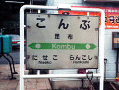 JR函館本線に実在する駅。初めて見たときには目を疑った。現地の人はきっと、「最寄り駅どこ?」と聞かれたら「昆布」と答えなければならないことに苦痛を感じていることだろう。ちなみに駅員はいない、無人駅である。