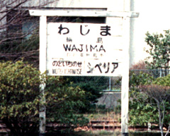 のと鉄道輪島駅の駅名板。小さくて見えづらいですが、次の駅は「シベリア」。