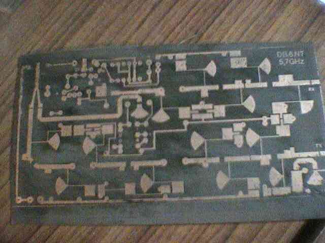 で、試しに作ったのは、DUBUSのTECHNIK 3に出ていたDB6NTの基板パターンを0.8mmのテフロン基板に焼くもの、それとINTERNATIONAL