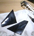 尾翼部品は黒と銀色の塗り分けが有りますから塗装前に凹彫りを