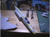 コクピットの組み立てを終えたら胴体に挟み込んで接着です