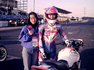 狭い筑波サーキットでは森澤選手の4サイクルのマシンに2サイクルマシンが徐々に迫ってくる。