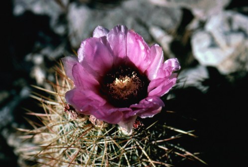 自生地はネバダ・ユタなどのモハヴェ砂漠、標高400〜1200メートルくらい。平原の枯れ川沿いや石のおおい斜面などを好むようで、日射のとても強い暑く乾いた場所に生えています。大竜冠、鯱頭、沙漠丸、アガベの青磁炉などとともにあります。