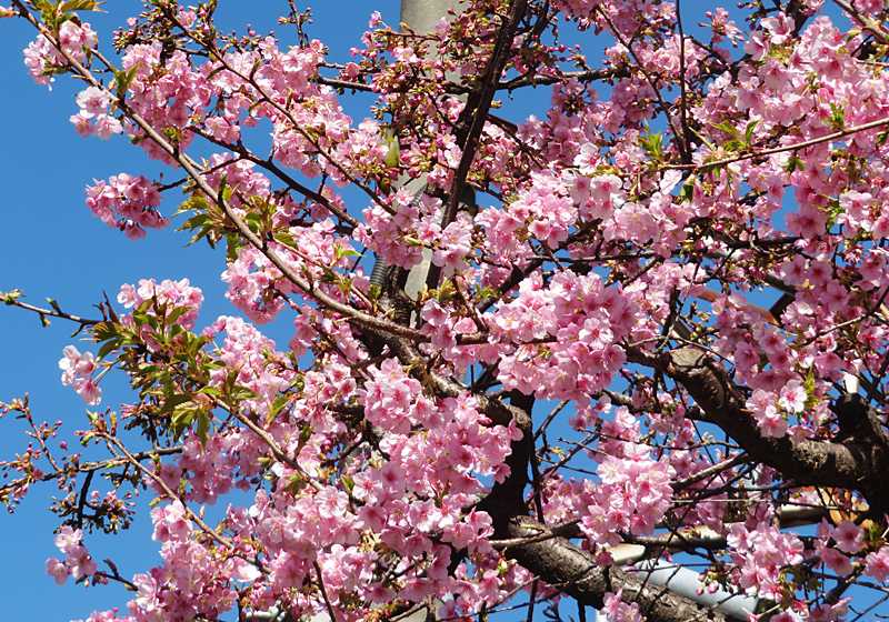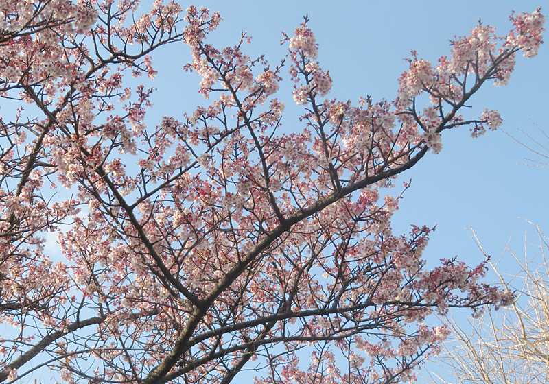 今日の画像は、桜の花です。通勤途中の歩道脇に小さな桜の樹があり、花が満開です。これも早咲きの寒桜でしょう。