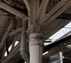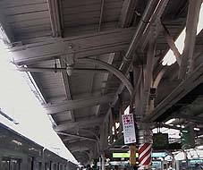 ホームの北側は屋根とともに柱も木造で、屋根との接合部もかなり凝った骨組みとなってます。