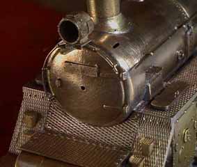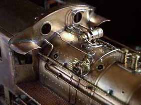 これでやっと機関車らしくなりました!C57は煙室前面の下部がデッキにめり込んでいて独特な雰囲気があるのですが模型ではこれを実物通りに再現すると煙室戸が取り外せなくなります。そのため市販されているC57の多くは そのめり込んでいる部分の表現があいまいで前面の雰囲気を壊しています。これを正確に表現するのが今回の加工の最大の課題(^^;)