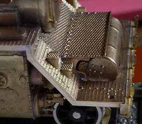 デッキの中央部分の網目板は作り直して目の向きを横向きとしました。ヽ(⌒〇⌒)ノデッキの下に抜けたキット付属の給水温め器がなかなかの逸品です!フロントをしっかり作りたい!と思わせた一枚の写真ヽ(⌒〇⌒)ノ