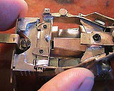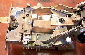 台枠は担いバネリンク受けの部分で分割。縦方向には動かず横方向のみに首を振る構造としました。左右それぞれ1.5ミリほど首を振ります。