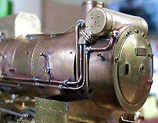 給水ポンプと温め器が繋がりましたヽ(⌒〇⌒)ノ本来はこの給水温め器の給水関連のパイピングはほとんどカバーで隠されてますが本機はすべて剥がされてる状態にします(^^;)