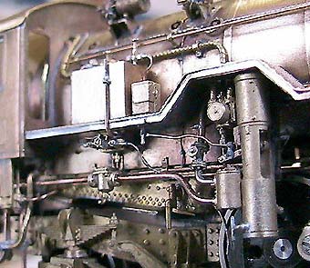 面倒くさい釣合室〜ポンプ付近の配管も完了ヽ(⌒〇⌒)ノ 清缶剤は冷えて固まりやすいらしく 細かく蒸気管が配されています(^^;) 前面の担いバネ点検蓋を開いた状態で取り付けヽ(⌒〇⌒)ノ これが開いた状態にするため 背の低い解放テコ受けを探して取り付けてあります(^^;)