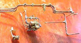 一本づつパイピングを製作(^^;)コツコツした作業が続きます。エルボに見えるのは細密パイプの輪切りの組み合わせ。キットの分配弁、ウイストの渦巻き塵取り、締切コック、ニワの吹き出し弁を使用。
