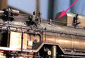 煙室扉枠には扉を固定するカンヌキ取付けと給水暖め器の張出しを表現。ヘッドライト下には架線注意のプレートを取付ける座を設置。
