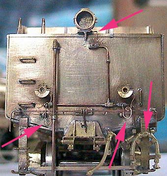 テンダー後面では ランプ類の配線を取付け。暖房管をステップの取付けブラケットにはめ込みましたヽ(⌒〇⌒)ノ