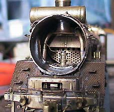 め次郎鉄道初の煙室内ディーリングに挑戦です!ニワの煙室内セットと金岡工房のペチコート。給気管のブラケットと吐出管座は板にボルトを植え込みました(^^;)一式を取付けた煙室内。吐出ノズルにブロアの配管を取付け。