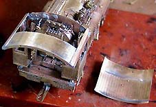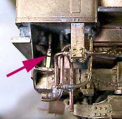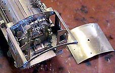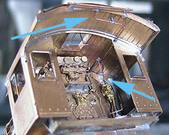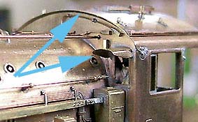 屋根後端に石炭への散水管、そしてインジェクタから繋がるその配管を設置。インジェクタ側には締切コックが付きます。