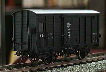妻板から延びたハンドブレーキのリンクもちゃんとブレーキシリンダのてこに繋がっており、そのヒンジ類もすべて表現されてる。すごい!おまけに片方の車輪は軸箱ごと可動式になってて3点支持となっている。戻る