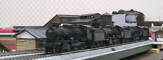 横の机の上ではみなさんの力作がずらり(^^;)め次郎鉄道の蒸機もフル動員しました。