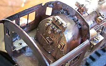 バックプレートもD51のドロップ製を失敬しました(^^;)密閉キャブの中はほとんど見えないので、あとは座席を取り付ける程度で完了としますヽ(⌒〇⌒)ノ |