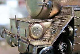 こちら側は0.3線でリベット植え込み。ついでにデッキの上にも植え込みましたヽ(⌒〇⌒)ノステップの下段はC62と同じく半分埋まった形のタイプとなります。 |