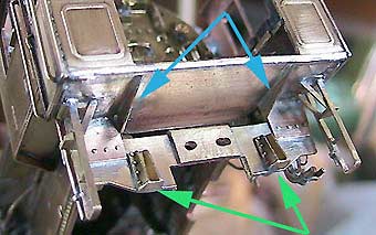 端梁にはこれまたニワの吊り上げ台座(緑矢印)取り付け。