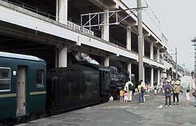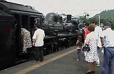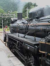 お客さんはさっさと居なくなったんだけど最後まで残ってC58を見ていたら気さくな機関士のおじさんがいろいろ話し掛けてくれましたヽ(⌒〇⌒)ノ C58も復活して15年、前回の全検から6年経ってるのであちこちガタが来てるらしいです(^^;)汽笛もかなり調子が悪く(鳴らすと熱水を吹いてしまう)気を使って鳴らしてるとか・・・(^^;) |