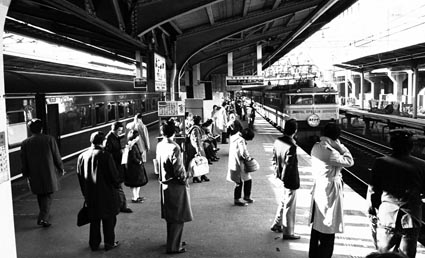 横浜駅で銀河(左の20系)を 追い抜きます。(⌒〇⌒)/