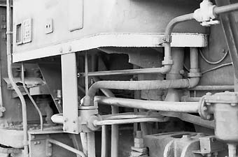 ![]() 二子三方コック回りの配管。九州のC57にしては珍しく暖房管はテンダー方向のみなのがわかります。 |