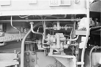 ![]() 空気分配弁回りのアップ。分配弁の上は無動力回送装置。 |
