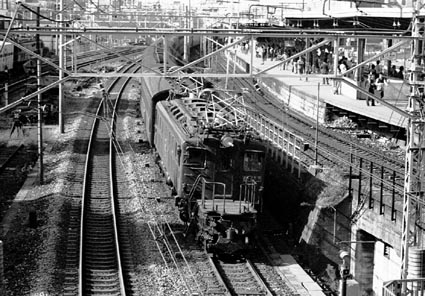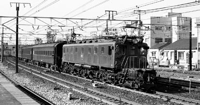 推進運転で尾久客車区へ戻るEF57-7 号機 鴬谷駅前
