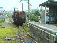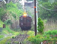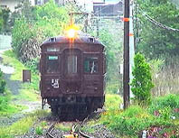 急に降りだした大雨の中、釣りかけモーターの音も高らかにやって来ました!ヽ(⌒〇⌒)ノクモハ42!