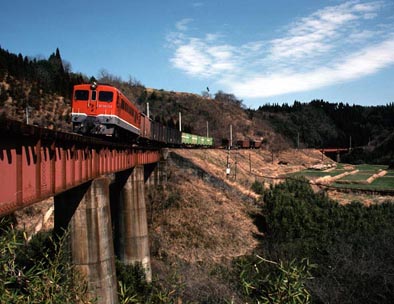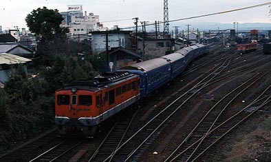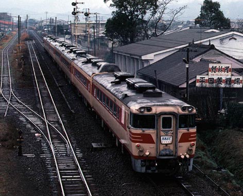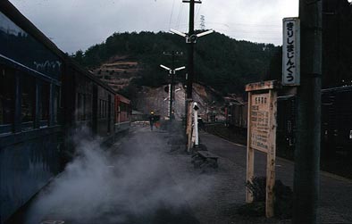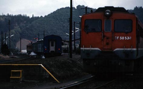 霧島神宮駅での列車交換風景です。暖房のスチームが旅情を誘います。