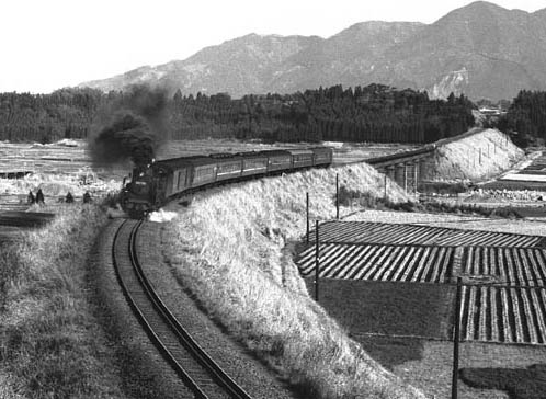 有名な田野の大築堤を快走する最後の定期蒸機急行「日南3号」。(⌒〇⌒)/ たった 半年間の運行でしたが 毎日この光景が繰り広げられていたのかと思うと 現在 次々と復活蒸機が登場しているとはいえ隔世の感がありますね(^^;)