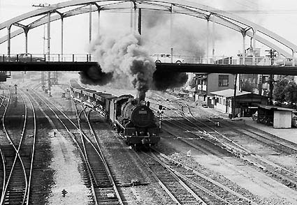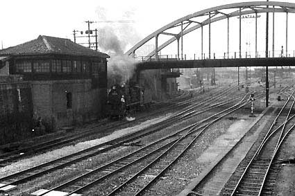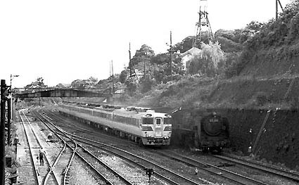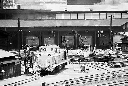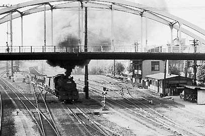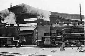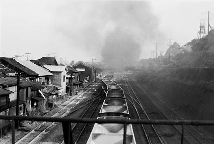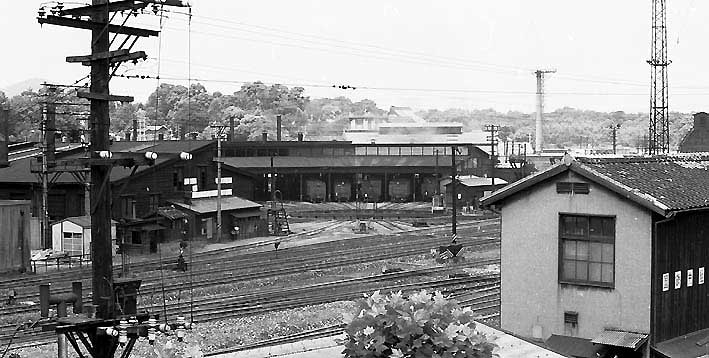 構内端の道路橋から見た直方機関区のラウンドハウスヽ(⌒〇⌒)ノ渋い〜〜!!