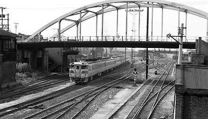 向こうに見える陸橋は下路式ターンテーブルの再利用品です。