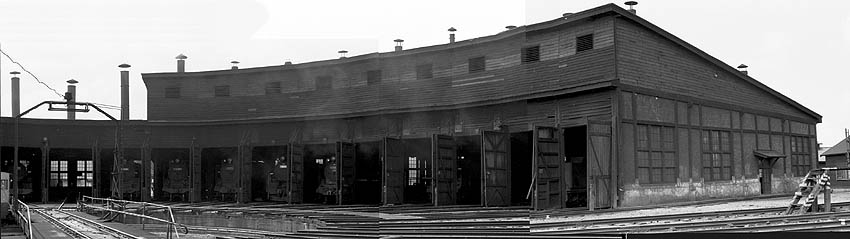 見よ!この威風堂々としたレンガと木造による大扇型庫!いかにも開拓地、荒野の機関区って感じの追分機関区(>0<)/こいつは たまらん!
