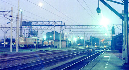 酒田駅から見た夕闇迫る酒田機関区ヽ(⌒〇⌒)ノ