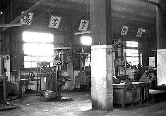 庫内の工作室ヽ(⌒〇⌒)ノ古いボール盤、旋盤、フライス盤などが並んでします。