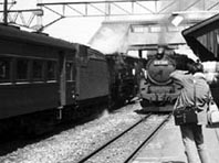 テンダーの重油タンクと延長したキャブの屋根が東北の蒸機の特徴(⌒〇⌒)/ 、、 再びD51列車で新津へ 、 数多くのD51列車と交換しながら新津へ到着。遠方に新津機関区のラウンドハウスが見える。